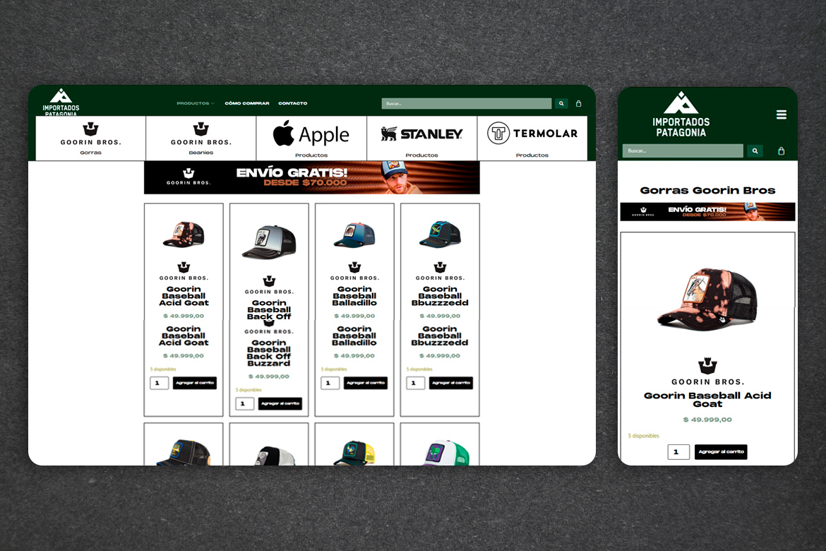 Website Importados Patagonia Website Importados Patagonia Cliente: Importados Patagonia Ubicación: Zapala, Neuquén, Argentina Trabajo: E-Commerce Colaboración con Eternia Estudio